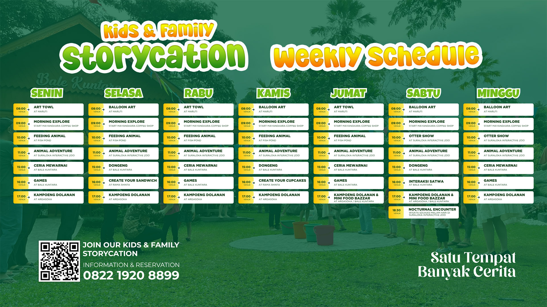 STORYCATION for Kids & Families at Griya Persada Hotel Kaliurang offers a full schedule of delightful activities such as animal feeding, storytelling, arts and crafts, and special evening events designed for staying family guest