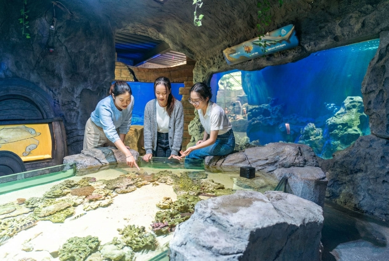 - Anak-anak yang bisa berinteraksi langsung dengan hewan di Suraloka Interactive Zoo